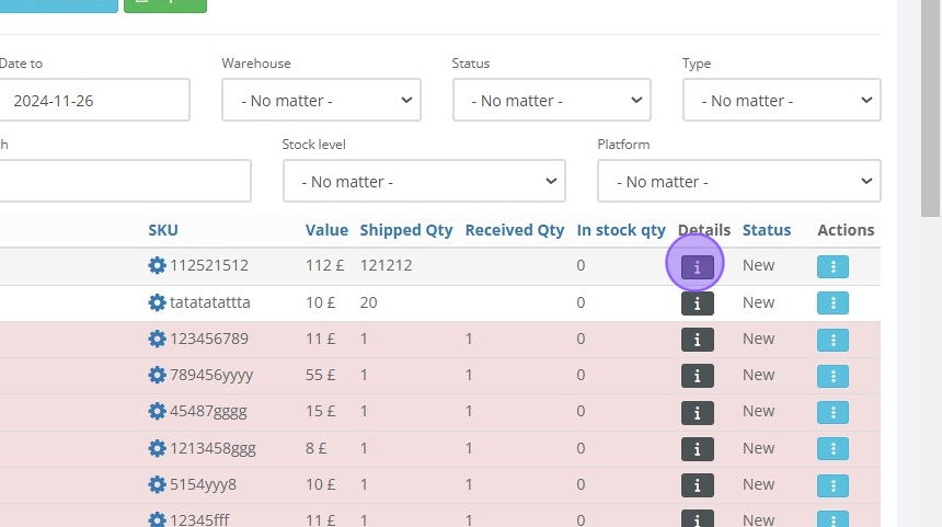 Tip: The top of the page also provides quick access to other product-related actions, including "New Products", "Manual Order ","Send to FBA", and "New Inbound". You can read about this separately by clicking on each of them